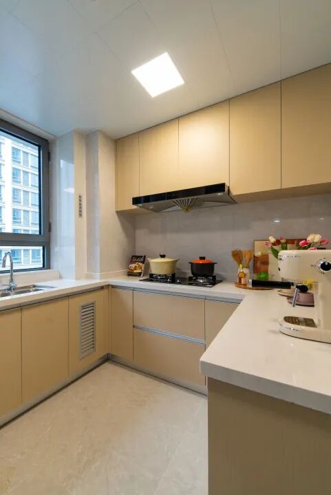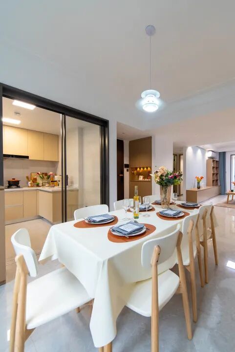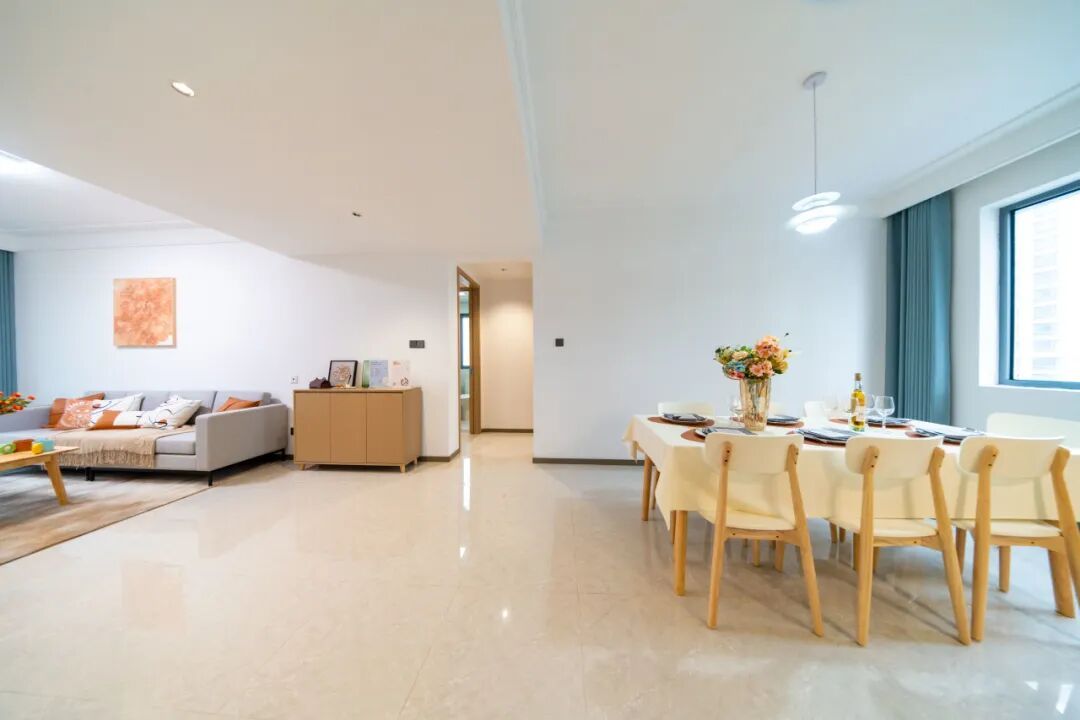 踏入港城领寓(泥城)的三室两厅,瞬间能想到往后的日子:早上阳光落在厨房台面,家人在这儿煮饭;孩子放学回来,客厅就成了他的小天地,再多的玩具都可轻松收纳;晚上客餐厅亮着柔光,全家围坐吃晚饭…… 没有多余装饰,却把每个生活场景都照顾到,烟火气里全是设计的贴心。