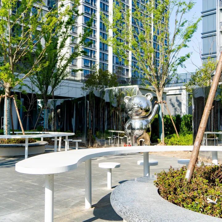 共享区既有专为孩子打造的 “蜜罐乐园”—— 细分 0-3 岁认知区、3-6 岁兴趣课堂、6-9 岁活力营地,小小孩能摸爬认知、大孩子可攀爬互动,下楼就能找玩伴;也有为长辈设的林下休憩区,摆着舒适座椅、晒晒太阳、聊聊家常很自在;还有供家长放松的共享休闲区,陪娃间隙能歇脚交流,全家都能在社区找到属于自己的舒服角落。