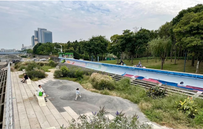 宝山邮轮滨江带始终秉持绿色生态理念,彰显滨江岸线独有魅力。通过深入推进“一江一河”公共空间贯通开放提升工程,积极建设改造宝山滨江,将原本是混凝土防洪堤和防汛通道的宝山滨江岸线,通过城市更新工作在不破坏原有防汛体系的前提下,用“波浪花园”“城市吧台”等景观情境,取代了原先单调的灰色基础设施,并设置了“三道”(漫步道、慢跑道、骑行道)加“一径”(花园游径)的多层级路径。