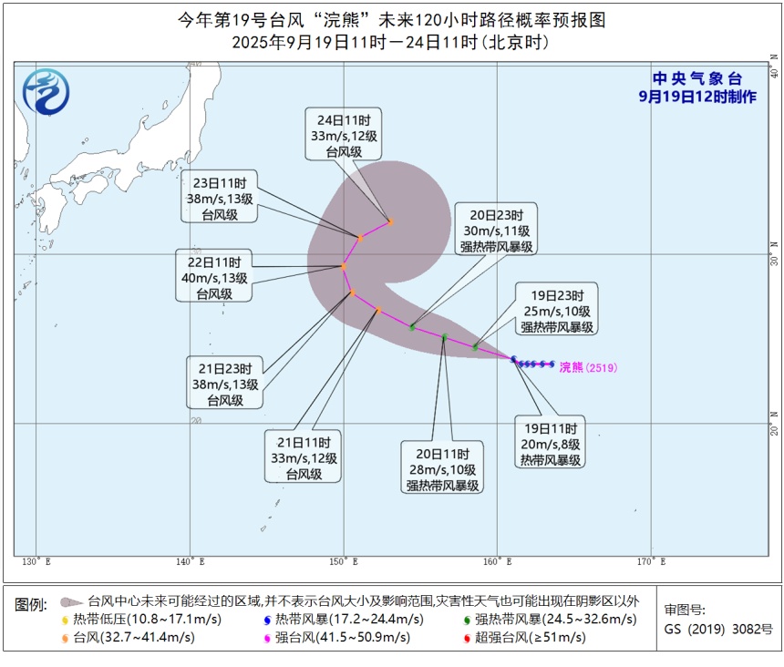 今年第19号台风“浣熊”距离日本东京东偏南方向约2430公里,也就是北纬23.9度、东经161.0度,强度为热带风暴级。“浣熊”将以每小时20-25公里的速度向西偏北方向移动,强度逐渐增强。