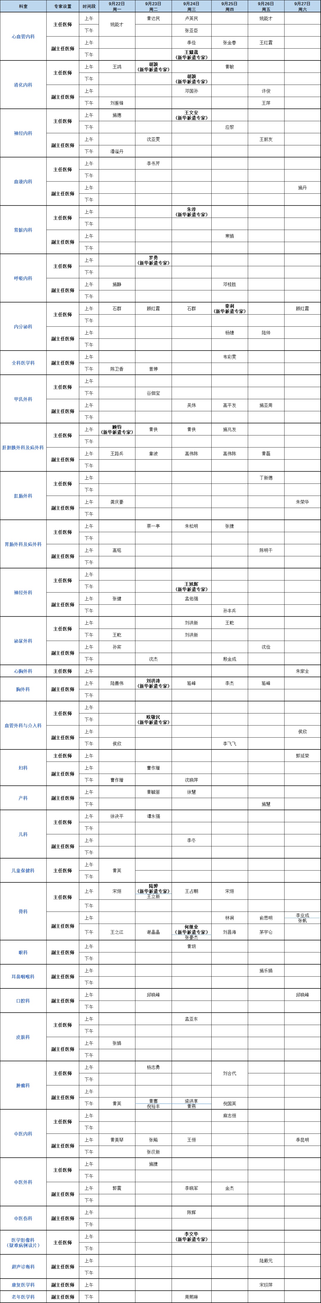 专家门诊安排(点击图片可放大)