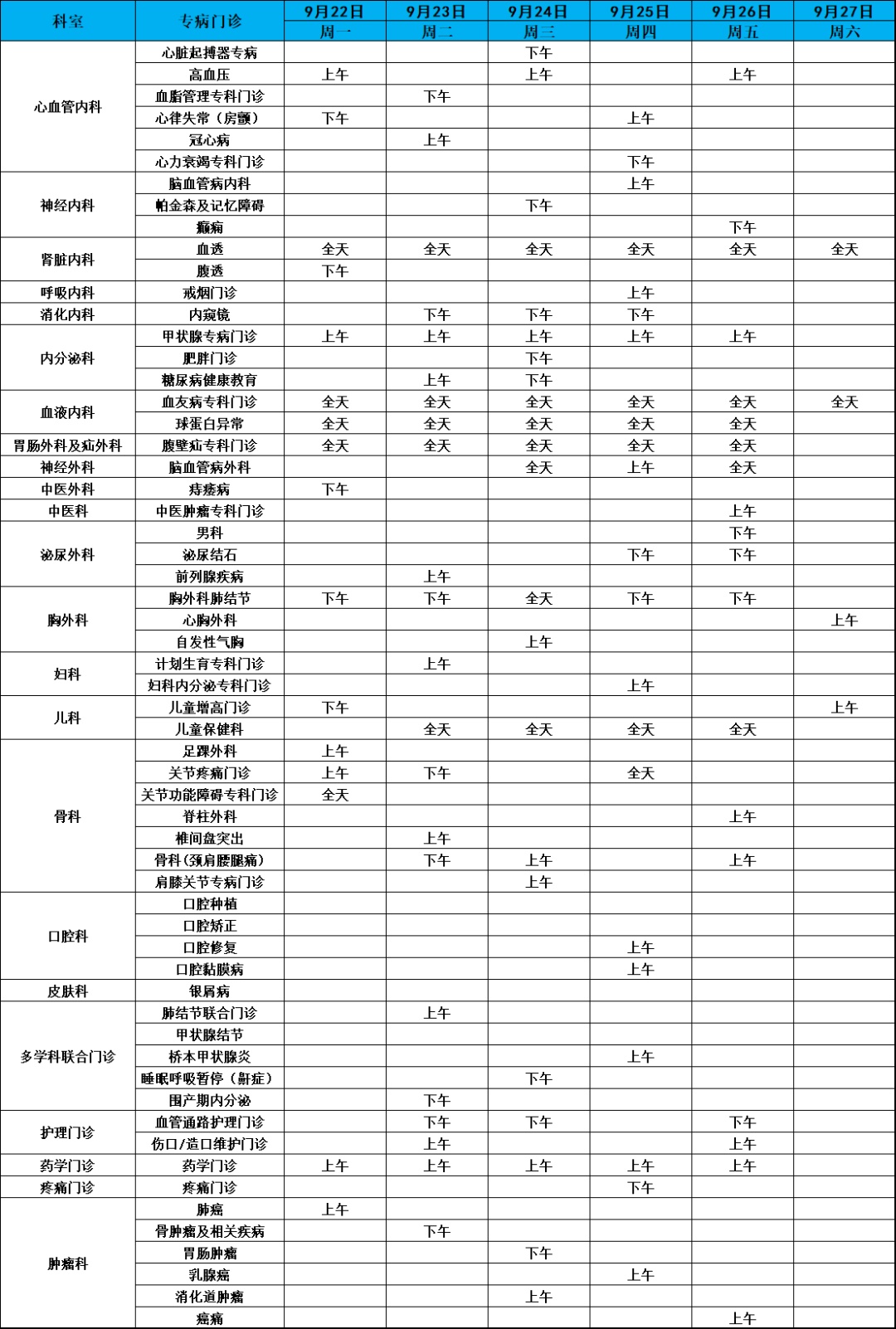 专病门诊安排(点击图片可放大)