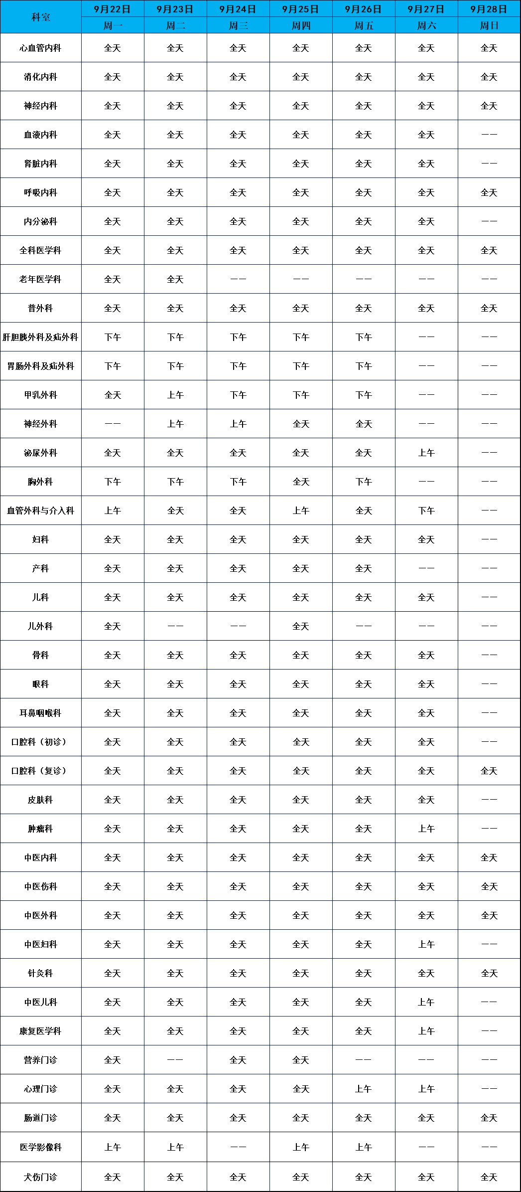 普通门诊安排(点击图片可放大)