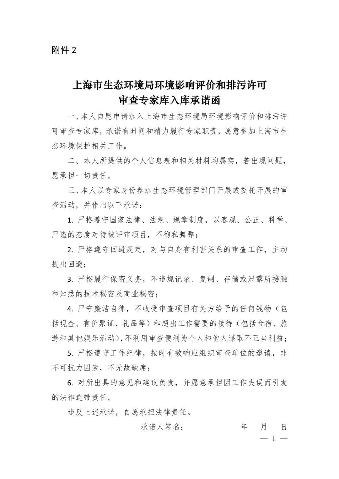 2.上海市生态环境局环境影响评价和排污许可审查专家库入库承诺函