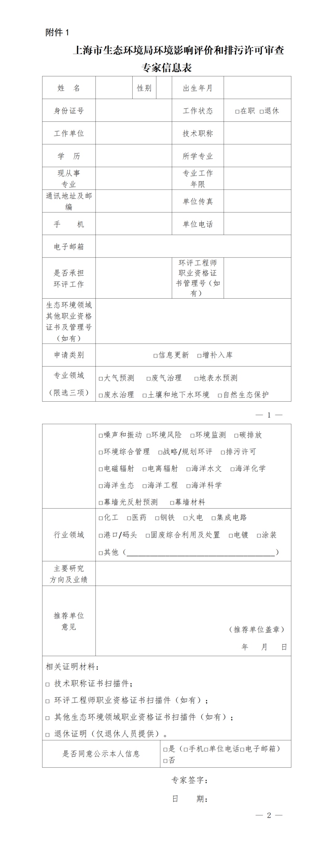 1.上海市生态环境局环境影响评价和排污许可审查专家信息表