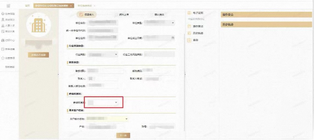 在“参保所属地”栏目选择相应的分中心进行调整,再点击“下一步”。