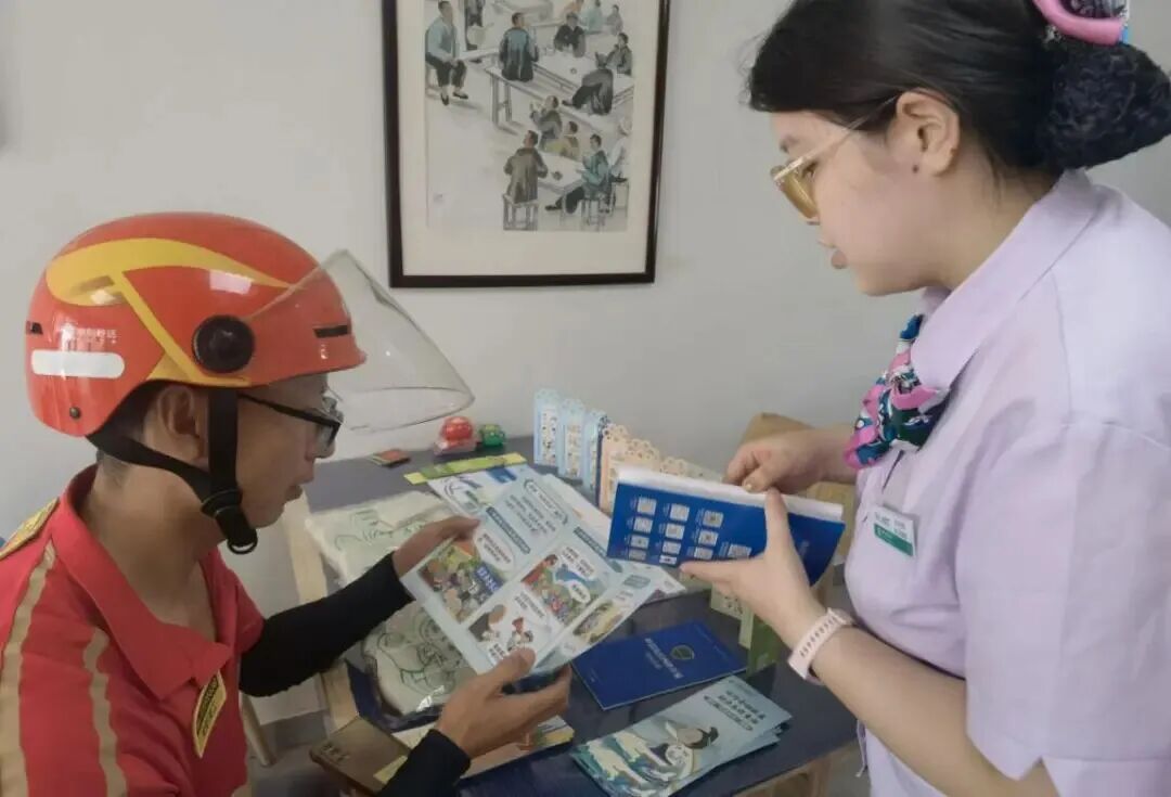 分行营业部在周浦镇社区服务中心为广大快递外卖骑手开展消费者权益保护的宣讲活动。营业部员工积极向往来的快递、外卖配送员等新市民群体讲解活动内容,并鼓励外卖骑手们成为金融消费者权益保护的“宣传员”和“前哨站”。借助他们直接接触广大市民的独特优势,在送餐之余,可以适时将基本的防诈骗提示传递给顾客,尤其是社区的老年人等易受骗群体,从而放大金融知识普及的辐射效应,形成“一人知晓,多方受益”的良好局面。