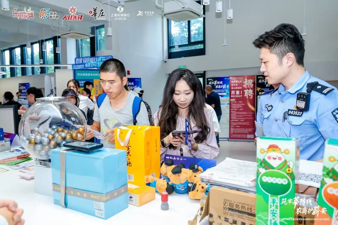 “此次活动融合了政府、公安、银行、企业四方力量,不仅助力大学生群体就业,也全方面为他们的职场安全护航。”莘庄镇社区事务受理服务中心就业条线负责人吴佳维表示,大学生是求职诈骗的高发人群,希望通过“反诈宣传+专场招聘”的双轮驱动,既守护好他们的“钱袋子”,也搭稳“就业梯”。
