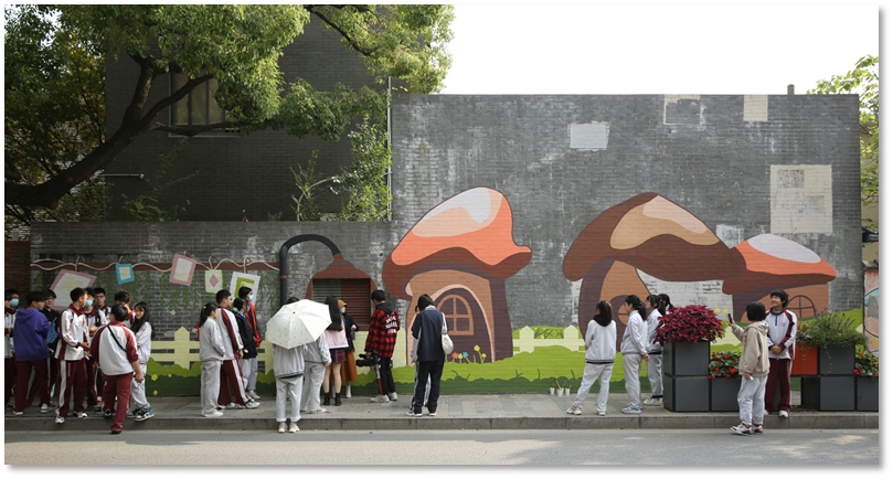 2020年,西南工程学校搬到颛桥,开始了和涂鸦艺术节的不解之缘。“学校创意设计部以设计见长,来到颛桥第一年就参加了第四届涂鸦艺术节。”西南工程学校老师徐玮嘉告诉记者,第一年他们带着四五个学生“现场助兴”,形式简单,却埋下了合作的种子。