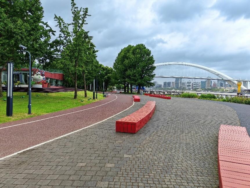 这段堤防位于黄浦江右岸,全长655米,默默守护着城市的安全。它是按照“千年一遇”高潮位防洪标准建设,采用一、二级挡墙组合结构,隐于绿植之下,与公园景观和谐共生,既坚固又美观,自世博会改造以来,不仅成为浦东防汛体系的关键节点,也融入了市民日常的休闲生活。