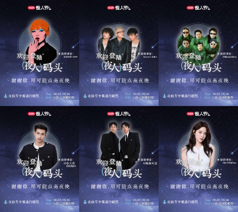 夜人码头还邀请到了范晓萱、欧阳娜娜、郭采洁、Mandarin乐队、简单对话、李大奔等艺人,用音乐与表演点燃夜晚!每一位登船的夜人,都可以来到码头与艺人近距离互动,一起开启探索夜晚可能性的集体冒险。