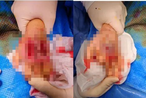 为避免进一步发展为骨筋膜室综合征——一种因压力过高导致神经、肌肉缺血坏死的严重并发症,骨科急诊团队决定立即行急诊手术:手背侧及掌侧切开减压,并放置VSD引流装置持续负压吸引,降低组织压力、改善血运。