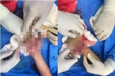 近日,一名7岁女童因好奇将右手伸入家中运转的压面机中,导致多发指骨骨折、严重软组织损伤,手掌高度肿胀。在当地医院治疗两天未见明显好转,转至我院骨科,急诊团队紧急实施手部切开减压及VSD引流术,避免骨筋膜室综合征的发生,二期再行骨折复位内固定术,目前女孩手指功能恢复良好,血运正常。该事件再次提醒家长,家中电器、机械设备需格外警惕,儿童安全需时刻重视。