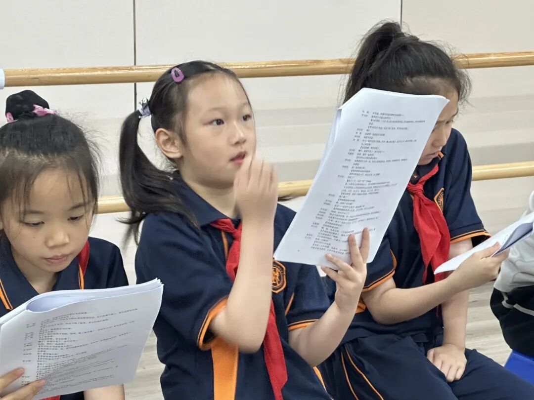 今年6月,学校在全校范围内公开招募演员,“我在三年级的时候加入了学校的戏剧艺术团,选角色的时候,我的绕口令说得特别好,获得了剧中‘湛宝’这个AI角色的表演机会。”四年级学生周乐煊说,之所以饰演“湛宝”是因为学校在今年的吉祥物冠名活动中采用了他的创意,将两个吉祥物冠名“湛宝”“煊宝”,“‘湛’是澄清的意思,‘煊’寓意太阳升起。”周乐煊非常自豪地说。
