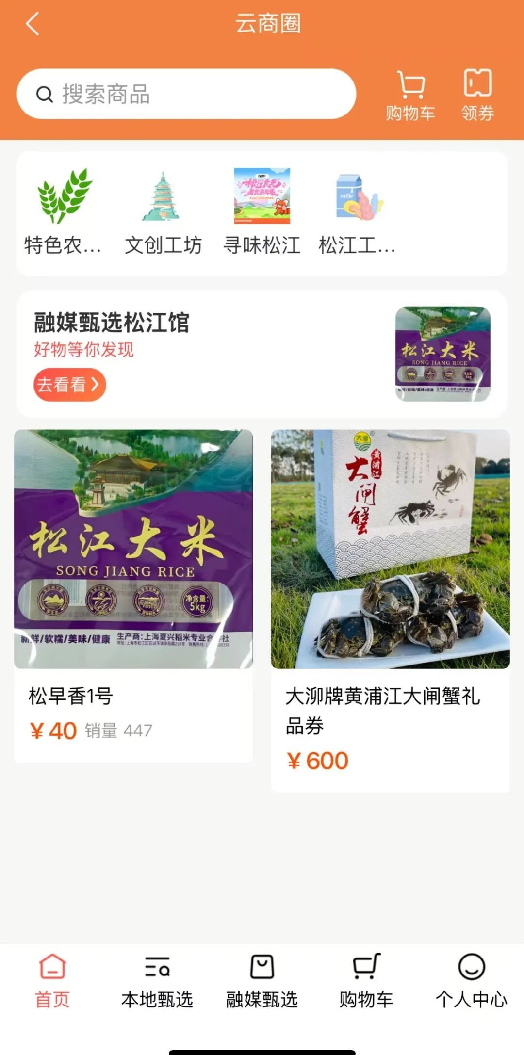1.打开“上海松江”客户端,进入“云商圈”页面,即可轻松下单。