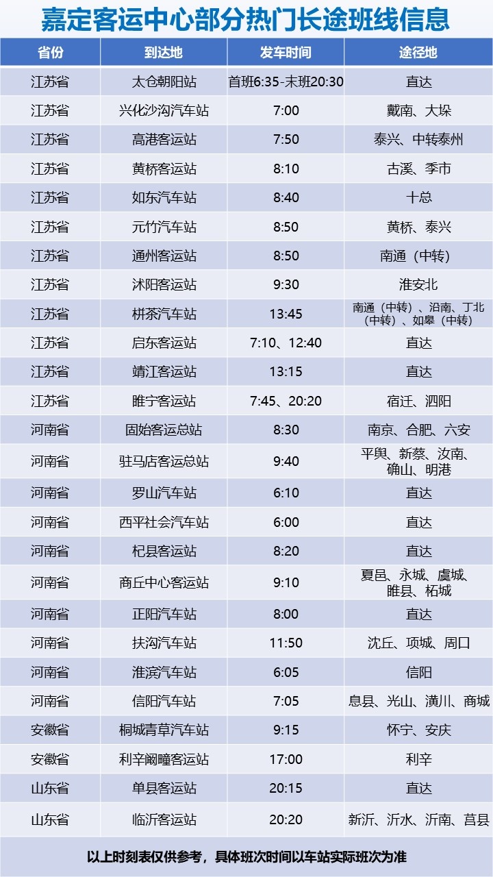 2.官方渠道:关注“上海嘉定客运中心”微信公众号,进入“长途联售”板块即可查询购票;