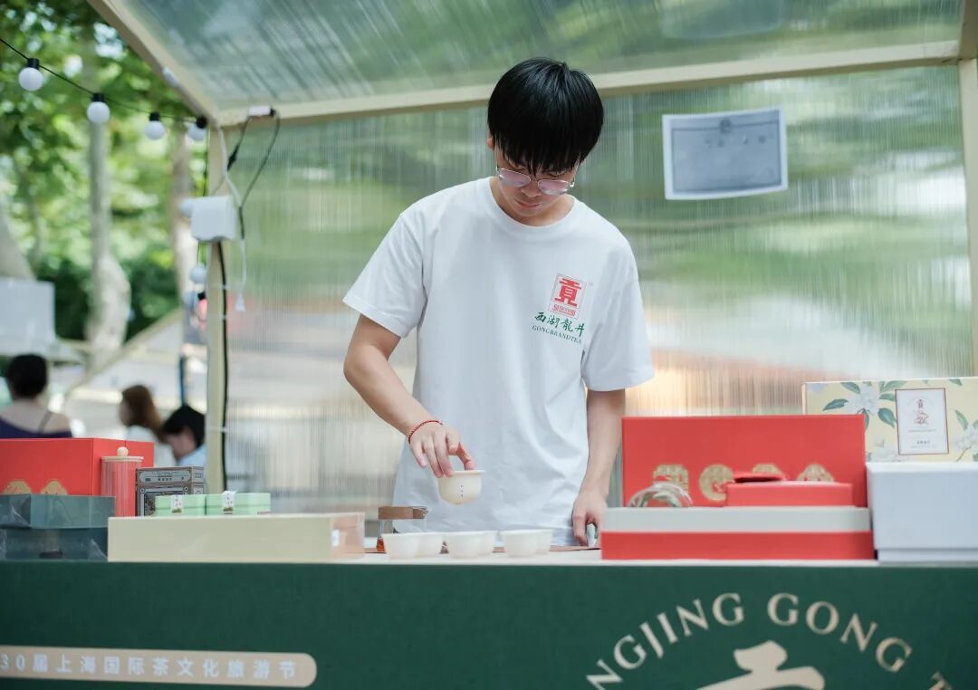 “茶汇静安,三十载芬芳,一叶承古今,杯中有汪洋……”开幕仪式现场,由知名音乐人清晨大攀温暖献声的茶文化旅游节30周年AI主题茶歌《茶汇静安》正式“唱响”。