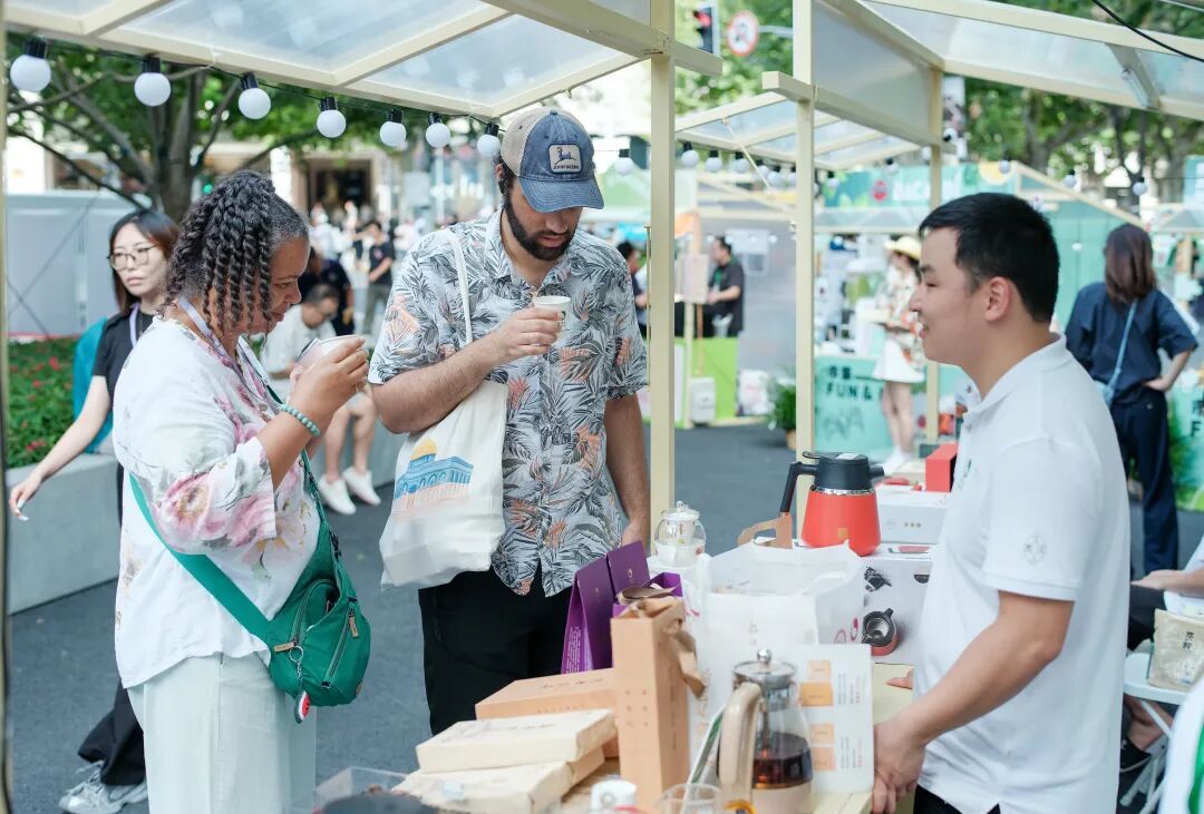 本次市集以茶为核心,融合咖啡、手作、轻食与艺术,不仅推出石生茶叶和T9tea两款茶文化节指定用茶,还汇聚茶饮、咖啡、非遗、文创等超过30个特色摊位,既有黄山市田园徽州等源头茶企传播传统茶文化,也有隐溪、醋咖啡等品牌演绎现代茶饮美学,还有“茶感咖啡”“茶酒融合”等创意特调点燃年轻人消费热情。
