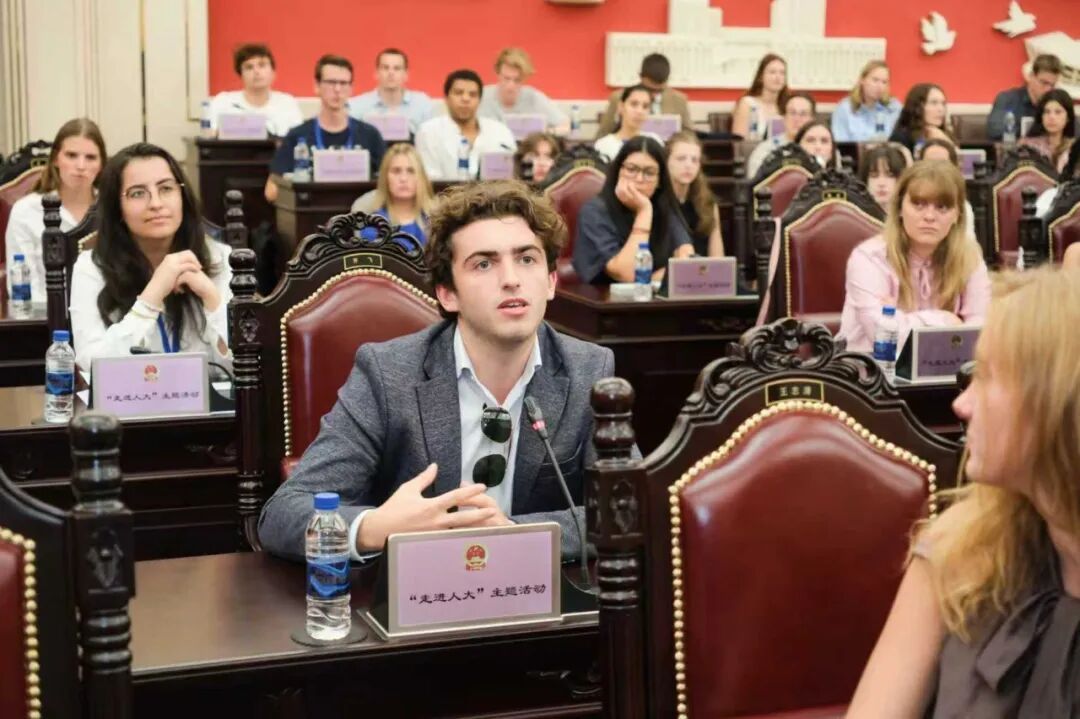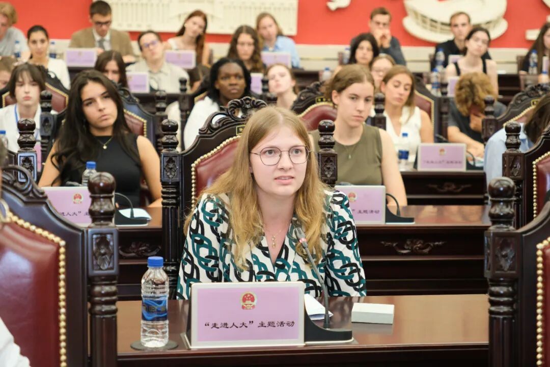 9月18日,来自比利时鲁汶大学—复旦中国法暑期班学员147名师生“走进人大”。在上海市人大常委会会议厅,学员们通过沉浸式体验,直观了解了中国人民代表大会制度,增进了对“全过程人民民主”重大理念的理解和认识。市人大常委会副主任、市人民对外友好协会会长陈靖出席并与学员们互动交流。