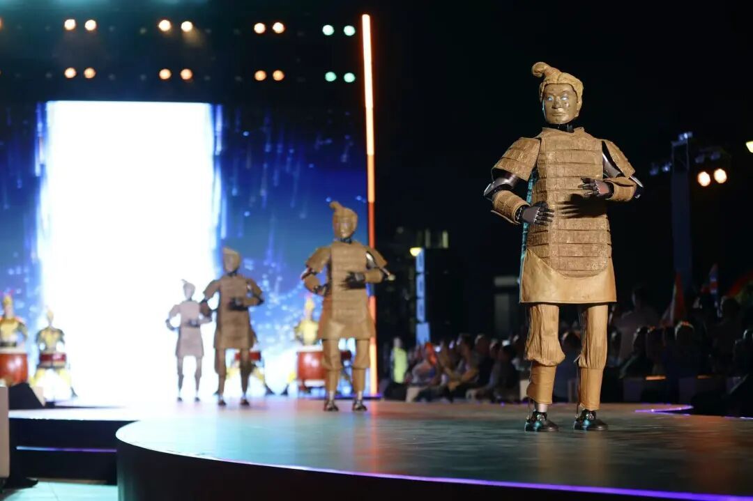 其中机器人与真人的互动融合表演是开幕式一大亮点。智元全尺寸人形机器人远征A2先后演绎了刚劲有力的《秦俑魂》和行云流水的太极,一刚一柔间完美展现武术的美学精髓;灵犀X2则与儿童协作完成动感跑酷,展现人机协同的创新魅力。