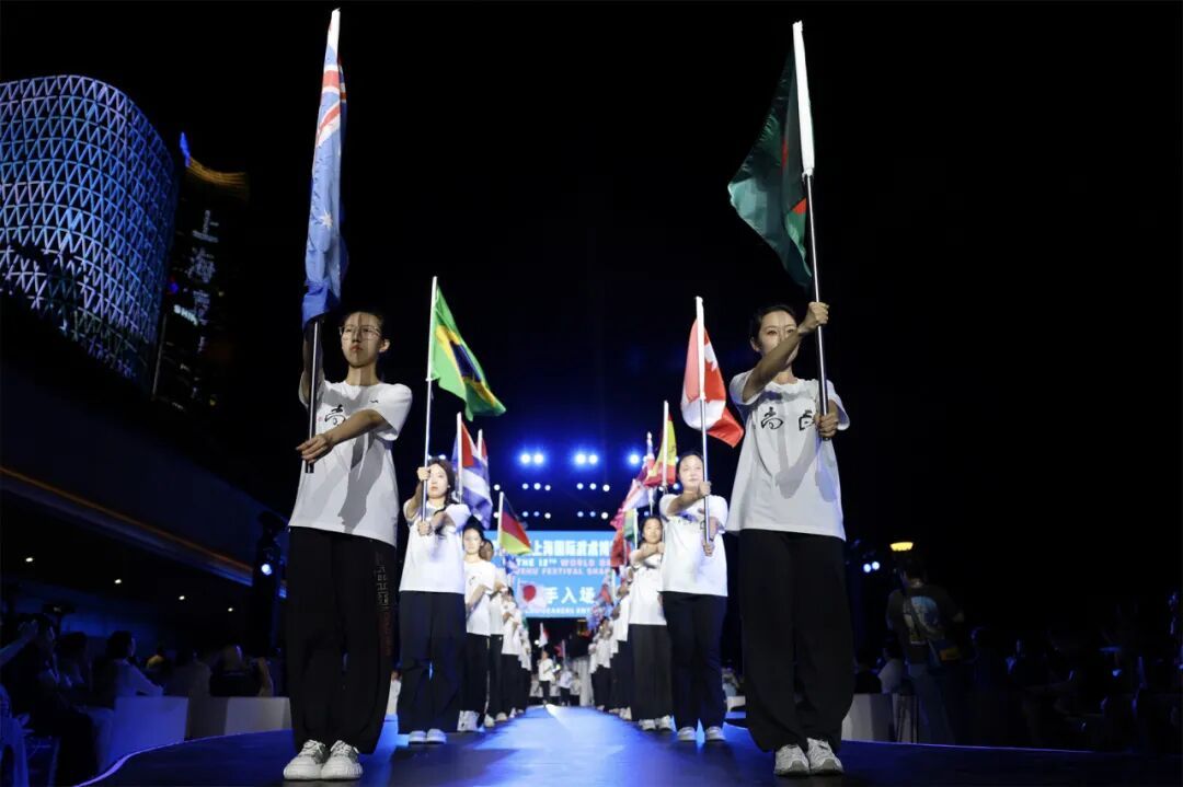 开幕式以“薪火传世·破界共生”“和光寰宇·天下共武”“光耀未来·连通世界”三大篇章依次展开,依托浦江两岸璀璨夜景为天然背景,呈现出一幅“流动的武韵长卷”。