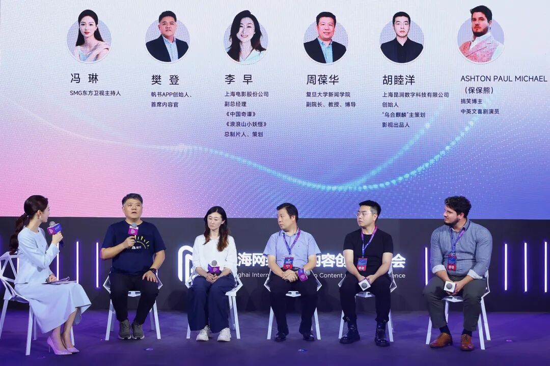 “围炉夜话”环节中,帆书APP创始人、首席内容官樊登,上海电影股份公司副总经理、《中国奇谭》及《浪浪山小妖怪》总制片人、策划李早,复旦大学新闻学院副院长、教授、博导周葆华,“乌合麒麟”团队主策划、影视出品人胡睦洋,以及搞笑博主、中英文喜剧演员ASHTON PAUL MICHAEL(保保熊)展开圆桌对话。