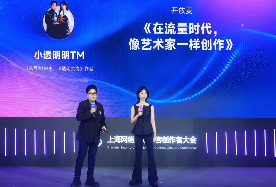 轻松活泼的“开放麦”环节中,脱口秀演员、喜剧编剧、《脱口秀和Ta的朋友们》第二季总冠军何广智以《上海,我的灵感房东》为题,讲述他在上海获得的创作灵感;B站百大UP主、《透明梵高》作者小透明明TM分享了在流量时代坚守艺术家创作初心的故事,真切表达了创作者的成长心路。