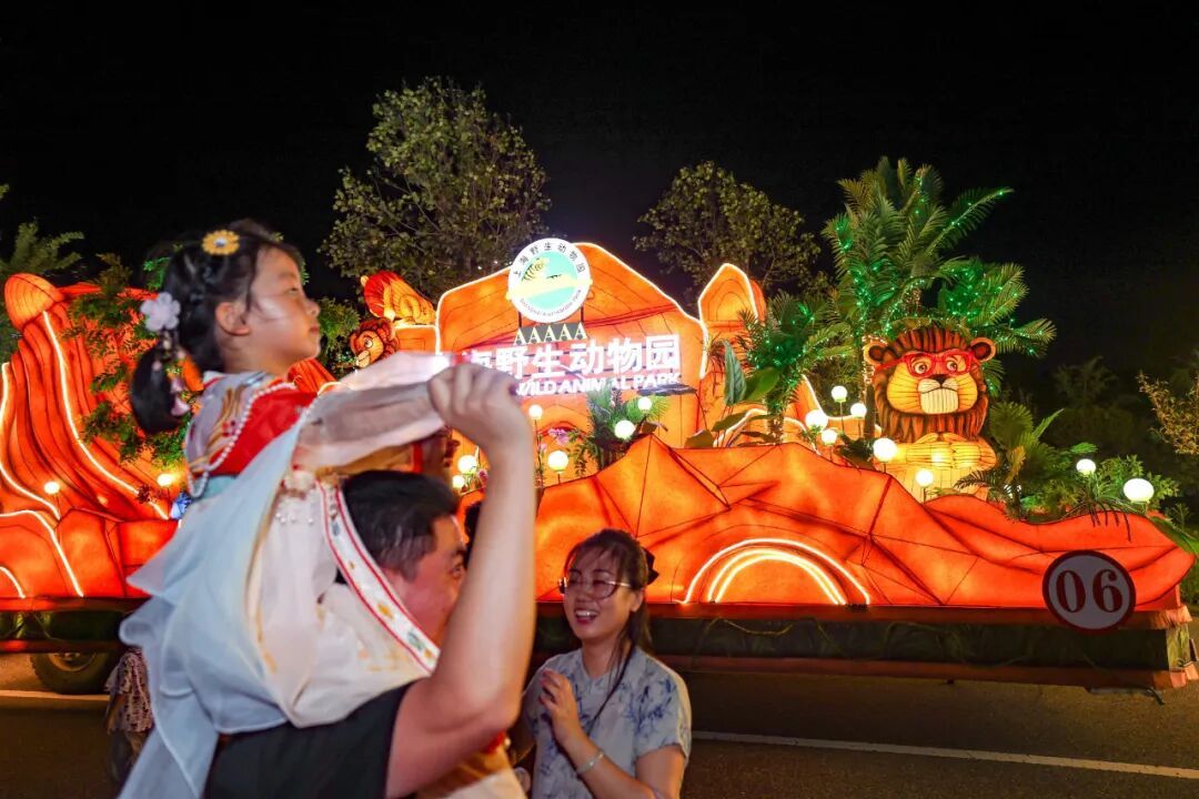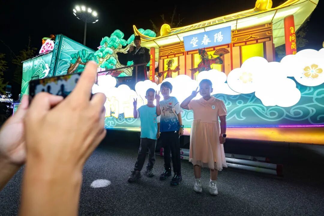 7时30分,花车巡游准时拉开帷幕。五彩灯光瞬间将花车装点得如梦如幻,既有江南风韵满满的本地花车,也有展现长三角一体化成果与民族特色的花车。一辆辆造型精美、主题各异的花车依次驶出,沿着文汇路、龙源路、广富林路前行。从闵行特意赶来松江观赏花车的洪女士说:“我的大学室友是河南和四川的,我特意拍照给他们看了,四川花车上的大熊猫特别可爱,我的室友们都觉得很兴奋。”