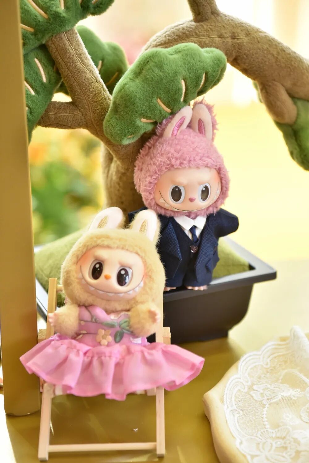 据介绍,这些为潮玩娃娃量身定制的微缩服饰,不仅精选宋锦、真丝、丝毛等面料,更是在制作工艺和纹样、领型等细节处理上一比一复刻真人服饰。