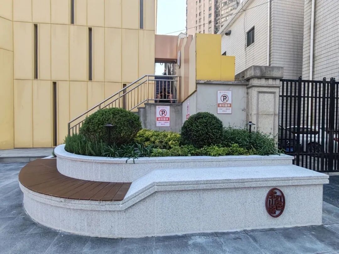 此外,原来停满汽车的消防通道处也增设了休闲座椅,非机动车充电桩的合理移位、停车位的规范设置、场地给排水及亮化提升设计,都让这片区域的整体品质得到显著提升。改造后的区域已然成为周边居民和过往行人愿意停留、感受的场所,红色文化与日常生活在这里紧密交织。
