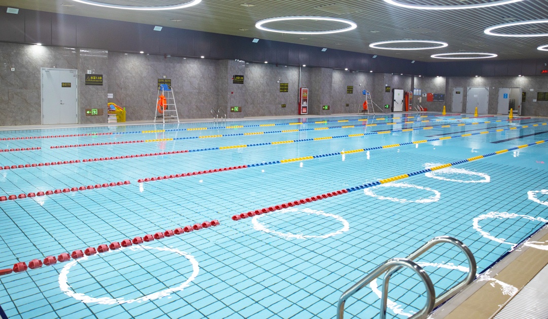 国金体育中心游泳馆采用先进泳池水质消毒技术,将氯气含量控制在相对恒定的0.3-06mg/L,还配有高效的水过滤装置和24小时运转的水质监测仪器,以保证水质干净。更衣室面积600平方米左右,男女各有超过150个储存柜搭配宽敞淋浴区,即便在高峰时段也不显拥挤。