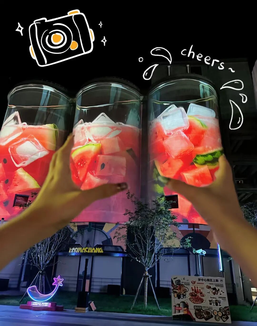 穿过“雾光森林”,小砼仓投影秀《治愈能量罐》会给你一份小惊喜:可爱萌宠、甜点、饮品在砼仓里随机“掉落”,云“吸”毛茸茸的小家伙,瞬间被幸福感包围。
