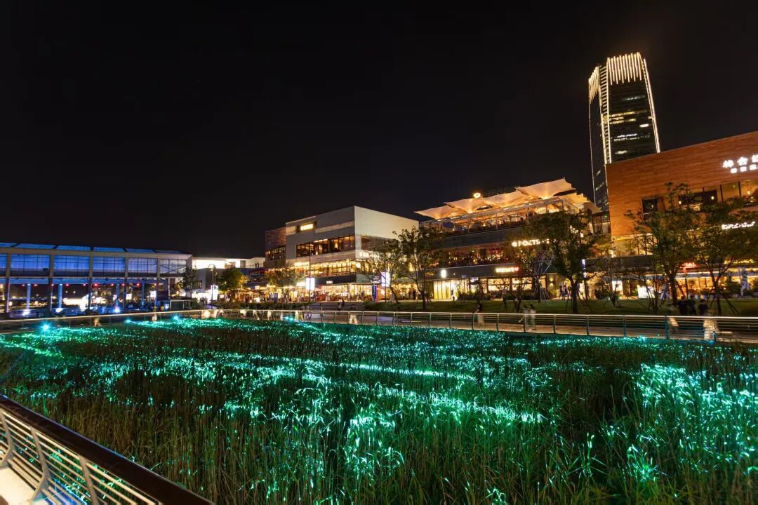 沿着江边步道漫步,抵达芦苇摇曳的亲水平台。激光点点如萤火轻盈舞动,《流萤》激光秀仿佛将夏末的银河揉碎在眼前。这里是拍照与放松的绝佳点位,静静站立片刻,便能收获一夜的温柔治愈。