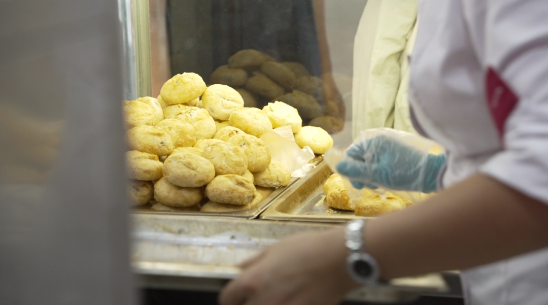 据第一食品杨浦店营销主管方卓文介绍,为应对日渐增长的客流量,门店每天早晨七点就开始准备原料和烤制工作,确保十点开门后能源源不断供应新鲜月饼。“我们是楼上烤、楼下卖,无缝衔接,就是要让顾客吃到最新鲜的那一口。”