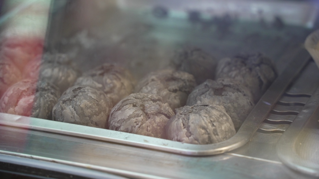 不仅在传统口味上用心,今年一些老字号还在形态和概念上做起了文章。比如南京东路排队“抢疯”的沈大成专柜,在经典款的基础上,新推了一款外表墨黑、个头迷你的“小煤球”鲜肉月饼,吸引了不少市民驻足。