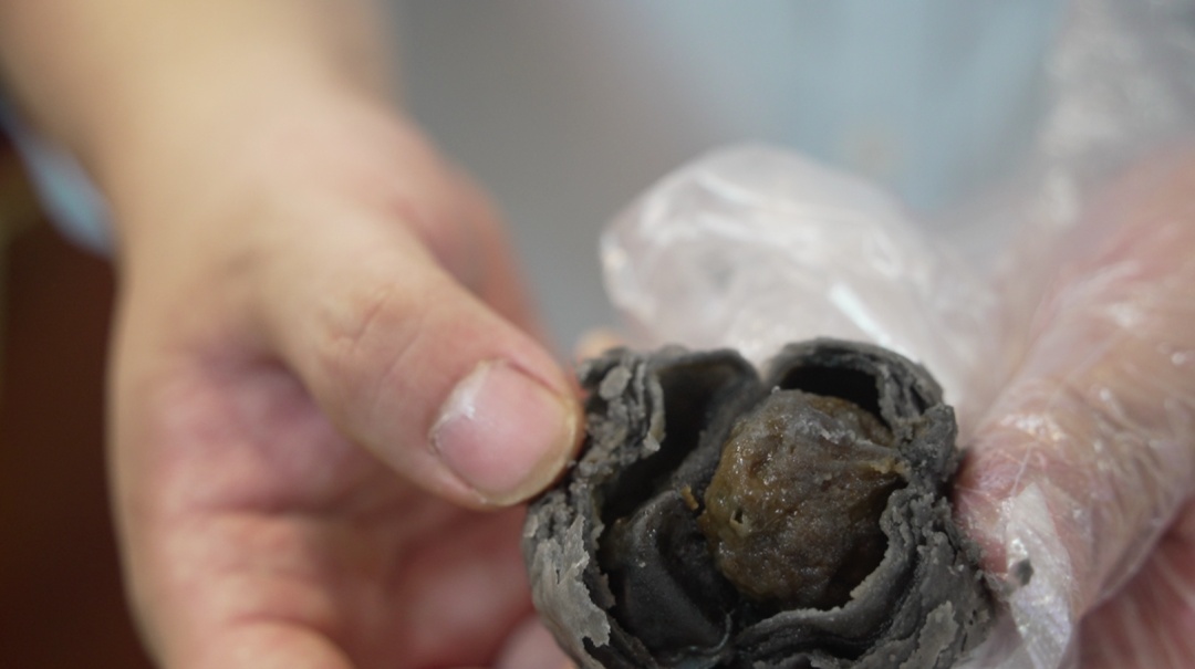 这款月饼只有小笼包大小,比常规月饼小巧不少。面点师傅陈雪告诉记者,饼皮中加入墨鱼汁,所以呈现深色,烤制后更加酥脆,内馅则依然保持着沈大成鲜肉月饼的经典调味。“一口一个,方便食用,尤其适合小朋友和喜欢尝鲜的年轻人。”