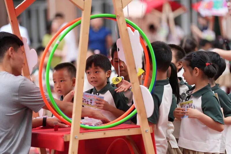 儿童视角里的各种提议,被统统“打包”成一场“快乐市集”里,孩子们的想法在市集里具象化,“无作业日”的无限可能呈现在眼前。十辆花车,蕴藏着数不清的快乐,从动手实践到艺术熏陶,从思维锻炼到身心放松,学校把“五育”融入每个体验项目,也让孩子们学会“无作业日”可以如何合理安排。