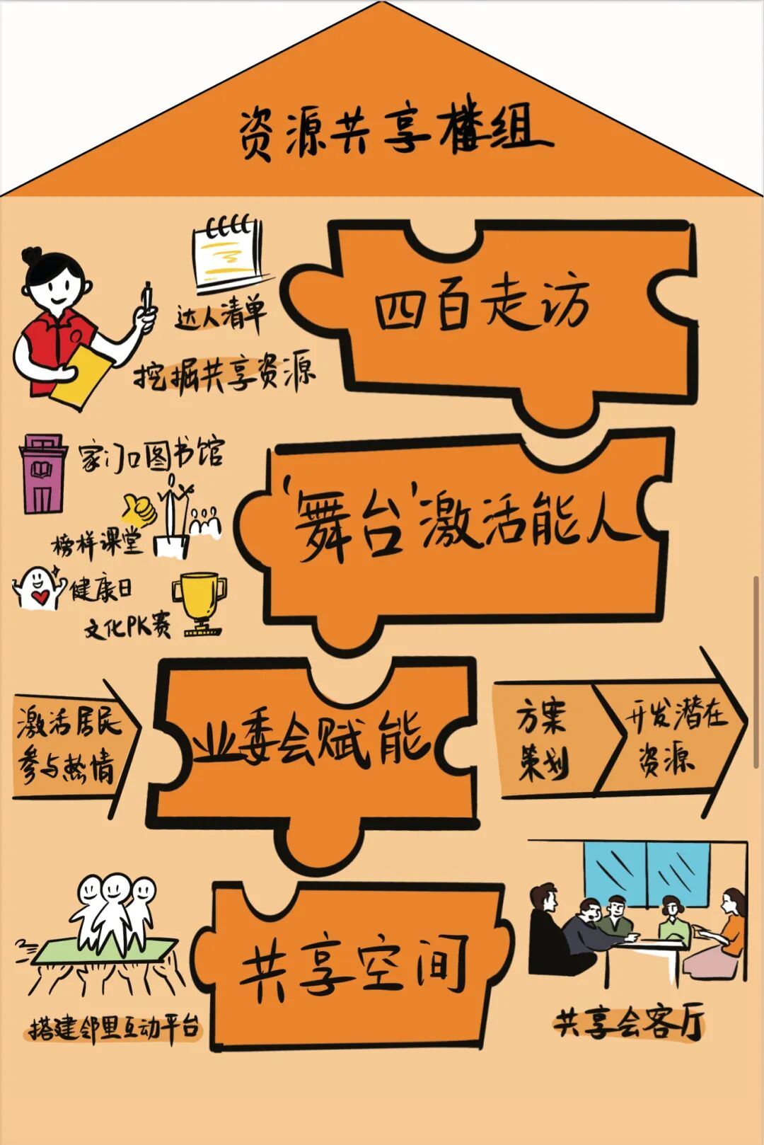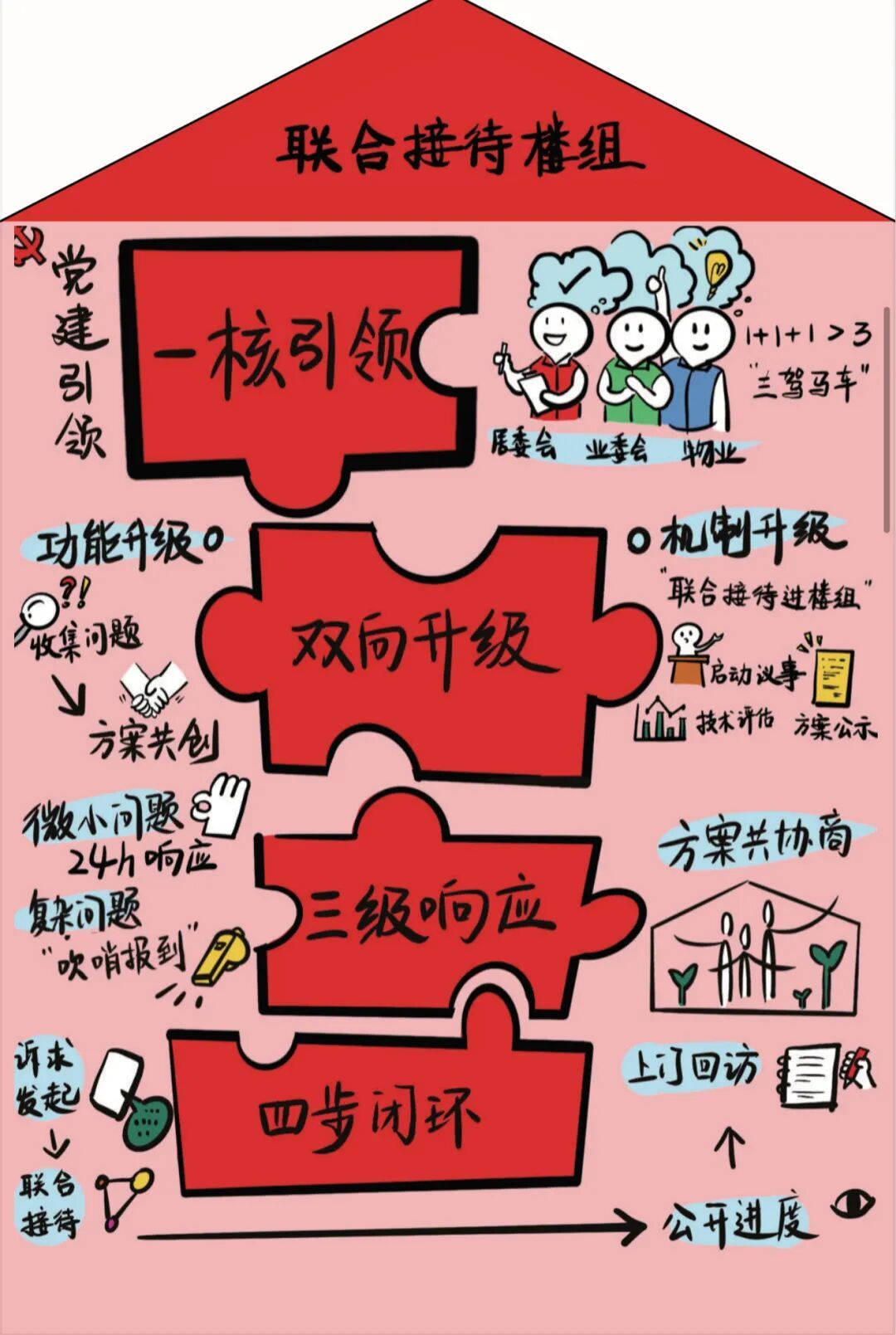 “六个一”工作法即为“一核一队一议一隅一品一励”。其中,“一核定航向”,三级联动(居民区党组织+楼组党小组+党员骨干)把准方向;“一队聚合力”,建多元自治队伍,楼组事务“有人管、管得好”;“一议集民智”,收集居民需求,反馈处理结果;“一隅融温情”,打造楼组微空间、共享角,链接邻里情;“一品聚人气”,育“一楼一特色”活动,聚能人达人;“一励提干劲”,增强正向激励,激发居民参与热情。