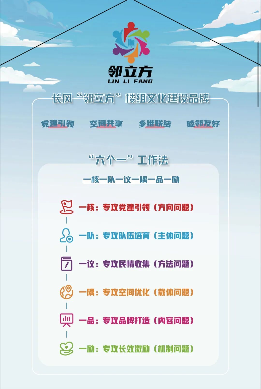 楼组治理要长效,离不开体系化支撑。从居民议事会上的意见建议,到社工团队上门摸排需求,长风新村街道逐步提炼出“党建引领、空间共享、多维联结、睦邻友好”的核心理念,总结形成“六个一”工作法,为楼组建设搭起完整框架。