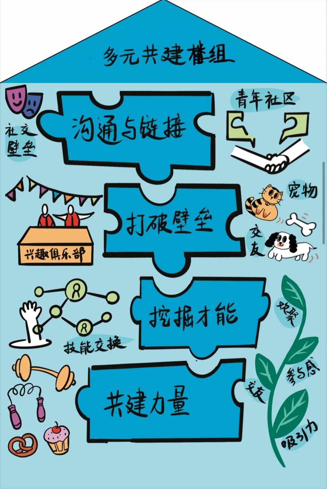 此外,街道年轻社工们开展了六类特色楼组地调研,绘制成一本《长风新村街道楼组打造攻略》,用漫画、流程图拆解六类楼组实操细节,让好经验可复制、能落地。还特别绘制了“长风楼组参访地图”,并以街道原创IP “长小风”为导览形象,带领大家一起感受楼道里的温情变化。