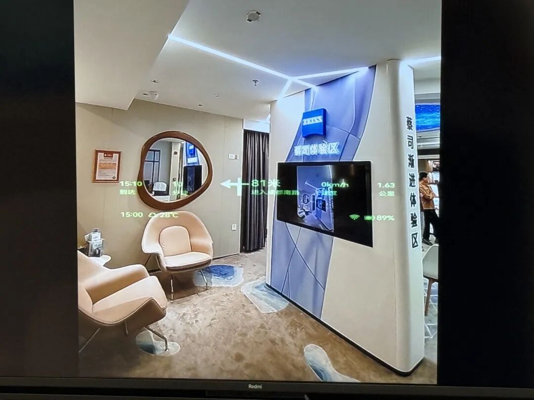 从精益求精的“质造”到科技赋能的“智造”,活动的另一大亮点是红星眼镜引入的最新款ROKID AR GLASSES智能眼镜体验。在科技创新体验区,这款黑科技产品成为全场焦点。市民们亲自佩戴设备,沉浸式感受增强现实(AR)与人工智能(AI)技术带来的视觉革命——它自带摄像头与显示屏、内置AI大模型,既能在city walk时规划路线、导航记录,又能对陌生景点拍照分析并同步讲解;即便身处陌生国家、面临语言障碍,其同声翻译功能还能将译文显示在镜片上,轻松解决沟通难题。