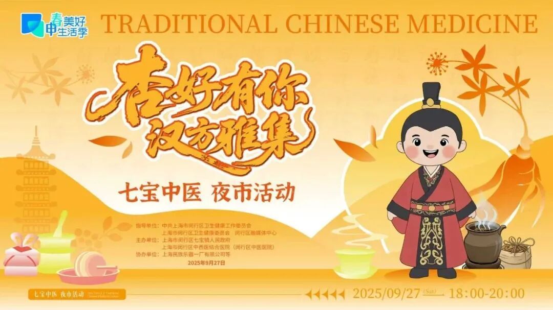 金秋送爽,丹桂飘香。继7月5日闵行区首届中医夜市火爆出圈、广受百姓好评后,作为“春申美好生活季”系列活动之一,“杏好有你·汉方雅集”中医夜市第二弹将于9月27日在七宝市民文化广场开市,邀您再度解锁国潮健康新玩法!