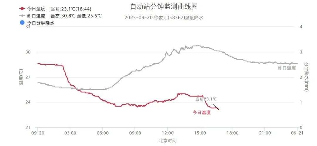 冷空气影响下,今天天空阴沉,有时伴有小雨,雨势总体较弱。今日最高气温止步26.0℃,这也是7月份以来最凉快的一天,伴随着4—5级的偏北风,明显感觉到夏秋交替的时节到了。