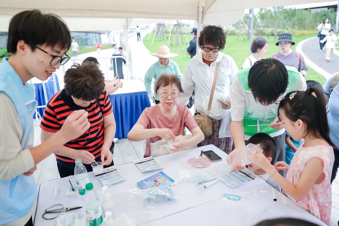 在普陀区眼病牙病防治所的摊位前,不少中老年人和孩子们一起动手做牙膏。“原来每天用的牙膏就是这么做的呀,太有趣了。”市民徐秀娣与小姐妹一起玩得不亦乐乎。另一边,6岁的甜甜和弟弟也在制作属于自己的小牙膏。“他们每天早晚都会刷牙,但是不知道牙膏是怎么制作的,今天正好动手做做。”甜甜妈妈说,这样的科普集市很有趣,逛公园还能学到这么多知识。