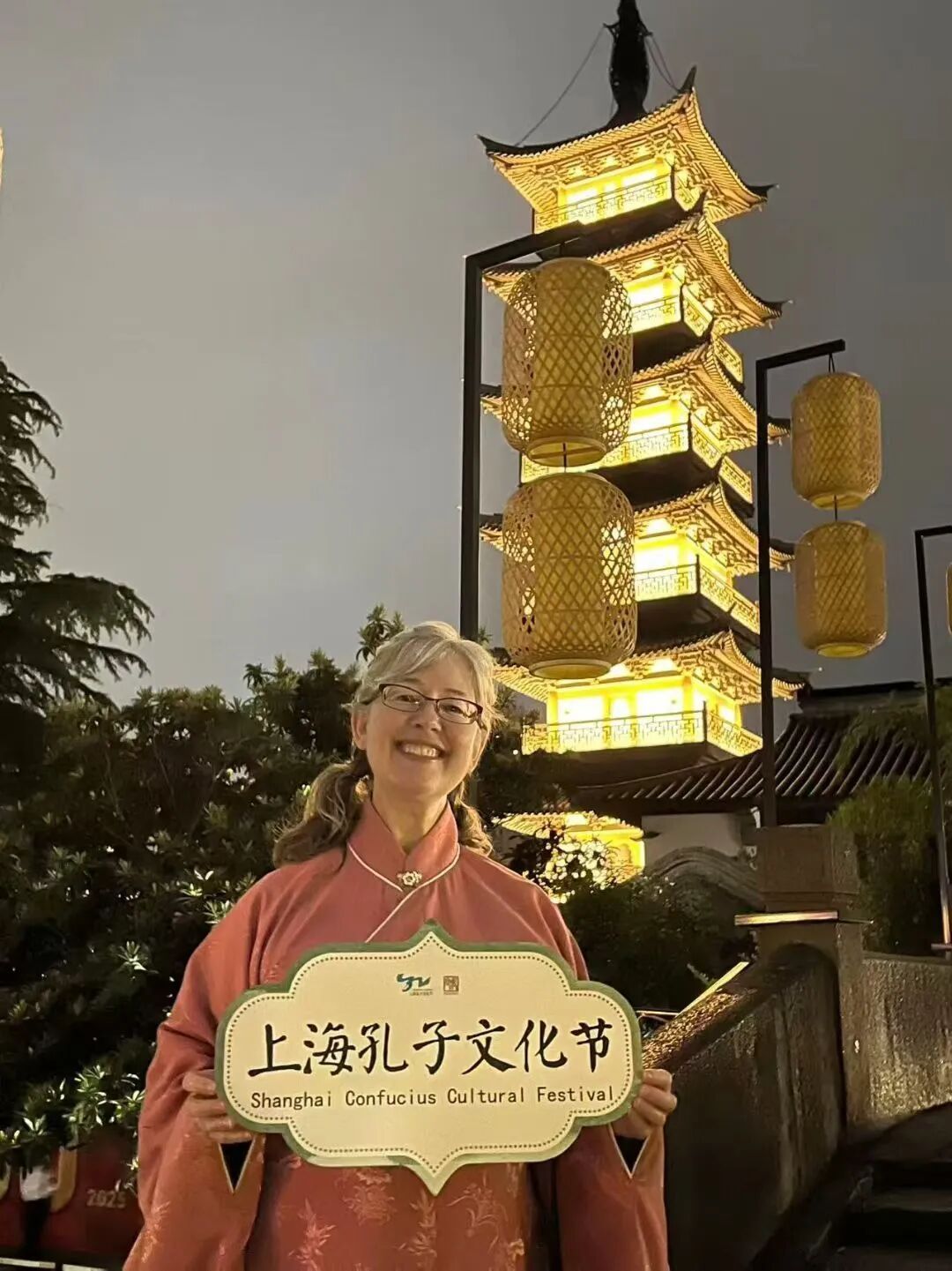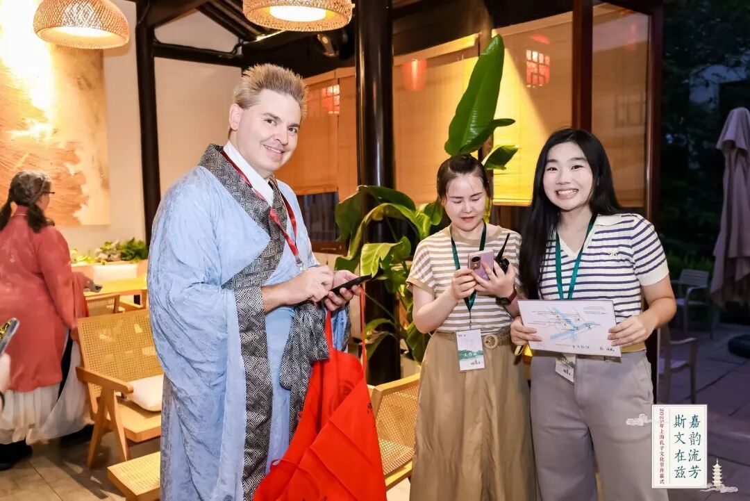 活动现场,不少外国友人也玩得兴致勃勃。只见他们手持任务卡,依次完成地标打卡、寻友合影、“我画你猜”论语成语、中文经典名句诵读以及变装体验五项挑战。
