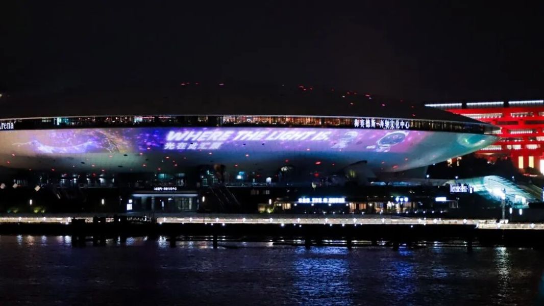 “光在此汇聚”建筑投影秀将在梅奔中心上演,较去年新增“科技+光影”元素。