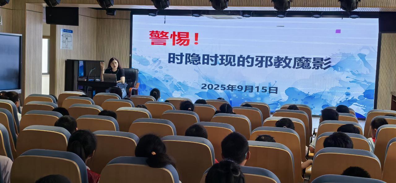 主讲老师结合当前邪教活动的新特点,深入剖析了邪教常用的“伪装术”,如假借“心灵疏导”“健康养生”等名义混淆视听,本质上却是通过精神控制、骗取钱财、破坏家庭等手段危害社会,让学生们清晰地认识到邪教的欺骗性和危害性。