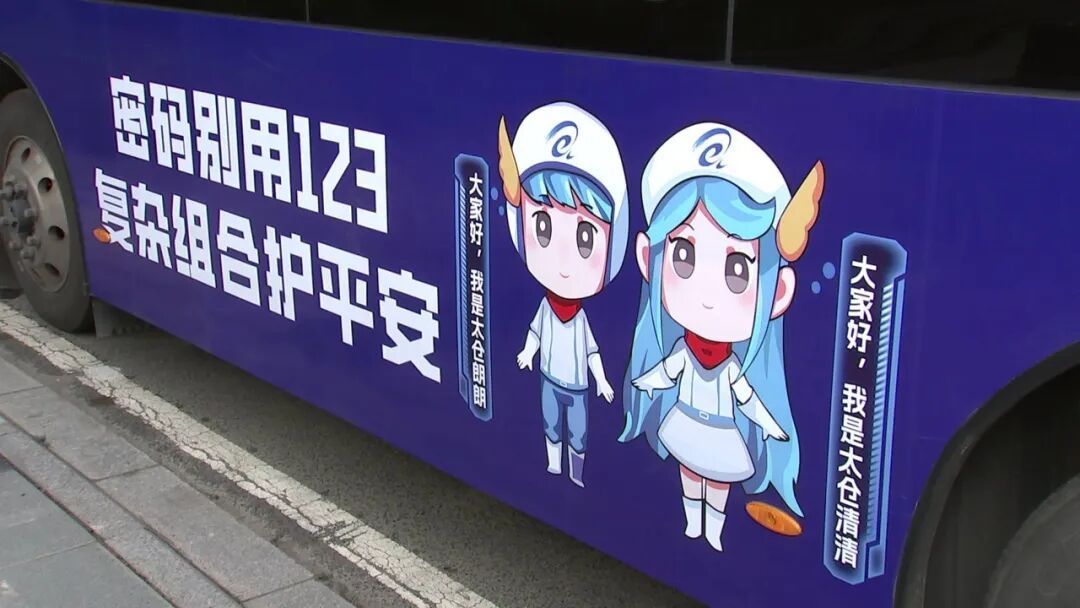 与此同时,太仓的“嘉昆太”网络安全主题巴士也别具特色。巴士外部展示了嘉定“E童子”、昆山“E小鹿”、太仓“清清”“朗朗”等网络安全IP人偶,以可爱风格增强趣味性与辨识度,拉近与群众距离。巴士内部,在乘客高频接触的车内拉手、挡板等区域张贴了涵盖多元主题的网络安全主题海报,车内电子屏循环播放着29个网络安全宣传微视频,聚焦高发风险,帮助群众理解防范方法。
