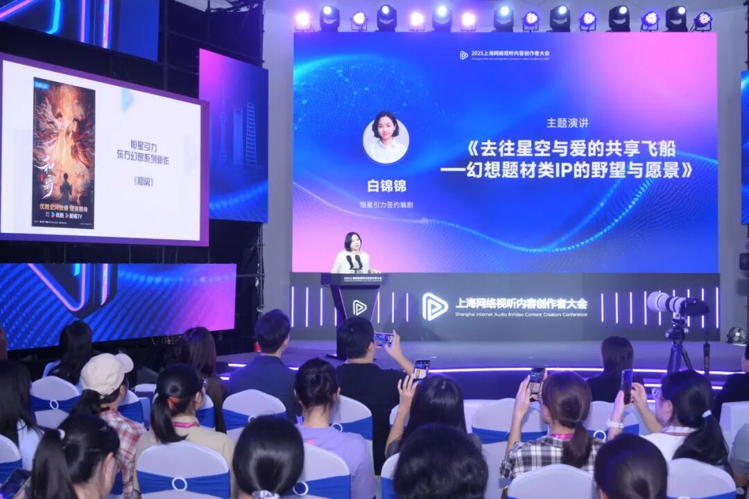 随后,恒星引力签约编剧白锦锦以《去往星空与爱的共享飞船——幻想题材类IP的野望与愿景》为题,列举自己编创的爆款剧《苍兰诀》《永夜星河》,回顾了一路走来的创作历程:“幻想题材能够让故事下沉大众、触动心灵,创造更多善意链接,让社会变得更加温柔。”