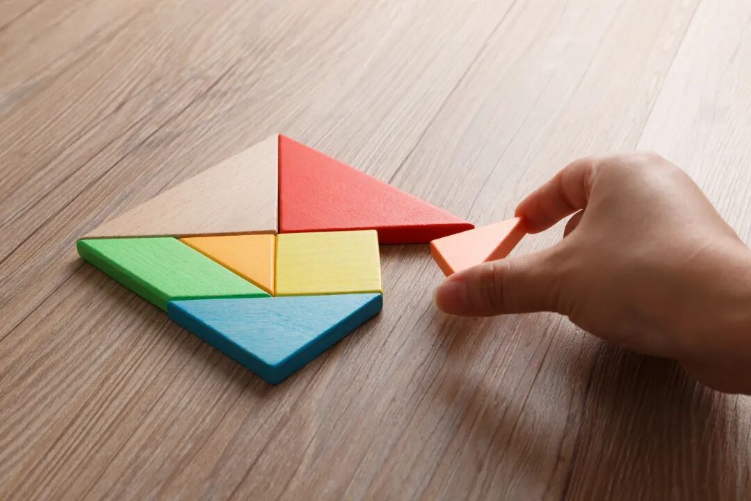 当长辈出现注意力不集中、判断力减弱时,可带领长辈将积木等进行形状分类、颜色分类、材质分类、功能分类等。